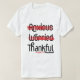 Thanksgiving T-shirt with modern design based on scripture. Philippians 4:6 "do not be anxious about anything, but in everything by prayer and supplication with thanksgiving let your requests be made known to God." Customisable colours.