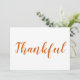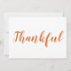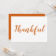 Thankful orange and white script calligraphy cute thanksgiving greeting card.