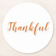 Thankful orange spice and white script calligraphy cute thanksgiving party Paper Coasters.