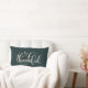 A modern simple lumbar pillow in deep green with the words "So Very Thankful", personalise with your name. This pillow is the perfect addition to your fall autumn home decorations, or makes a beautiful gift.