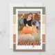 Autumn Colour Block Thankful Photo Thanksgiving Greeting Card or Dinner Invitation. Rustic fall colours frame a photo with oversized script typography in front of the photo block. Reverse message "Sending Warm, Heartfelt Wishes from our House to Yours this thanksgiving". Or edit to customise your own message or dinner invitation. Digital download available.