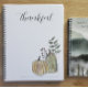 Our popular double pumpkin watercolor now adorned on a spiral notebook making a great gift or addition to your stationery supply. Notebook displays the message “thankful”. Watercolor design created by Night Sky Paperie.