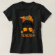 Thankful Teacher Leopard Messy Bun Autumn Thanksgi T-Shirt