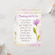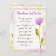 Bless someone with this elegant fully editable watercolor and script design featuring the for position message, "Thanking God for You. For your generous and kind heart, your thoughtful and genuine soul, and your bright and beautiful spirit. You are a light to everyone you know, especially me." Back has this message, but can be edited to fit your needs. "I hope you realise every day how much you are appreciated, cherished, and loved." Featured watercolor flower accent, digitally-tended gold dot border on top and bottom (removable) on colourful watercolor design background. Placeholder for your name or signature.