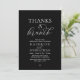 Elegantly announce your happily ever after with our modern classy wedding elopement celebration invitation card, "Thanks a Brunch". Tailored for couples continuing their love story, this invitation strikes a perfect balance of sophistication and charm, setting the scene for an unforgettable event. Featuring a modern contemporary script design, white text on black background, it adds a touch of timeless grace to your special day, this invitation is a stylish expression of your enduring love.