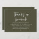Announce and share your happily ever after in style with our modern theme design (thanks a brunch) post wedding brunch celebration invitation card. It is ideal for couples who have decided to celebrate their best day. With its sophisticated yet playful design, this invitation is sure to set the tone for an unforgettable event. The invitation card features a modern design, olive green theme, adding a touch of timeless elegance to your celebration. Designed by TeeshaDerrick