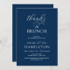 Beautiful Modern Romantic Navy Blue Script, Post wedding Brunch Invitation card (Thanks a Brunch). This is perfect for your post and elopement wedding celebration. Add your details in matching colour, font / lettering.