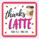 Thanks a Latte Pink Teacher Appreciation Gift Square Sticker