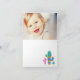 This cute animal themed birthday party folded thank you card for girls features a happy festive llama with a rainbow bunting banner decoration. Design thanks guests for coming with "Thanks a llama!" text and personalized wording. The inside of the card includes space for a party photo of the birthday girl (optional) and colorful cactus plants. Bold colors include pink, fuchsia, teal green, turquoise, royal blue, and golden yellow.