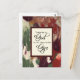 Christmas personalised postcard depicts an abstract background in bold shades of red, purple and green. It features an inspirational quote, "Thanks be to God for His Indescribable Gift." The back Bible Verse John 3:16, "For God so loved the world that he gave his only Son, that whosoever believeth in him should not perish, but have everlasting life."