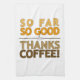 Does coffee give you motivation, endurance, confidence? Is coffee the spark that powers you through the day? Can you trace all your success to your favourite caffeine beverage? Show some love to your drink of choice: "So far so good. Thanks, coffee!"