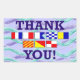 Nautical flags spell out thank you, showing your gratitude in more than one way. This sticker can just be stuck on a paper, or used to seal an envelope, or any other way you can think of.