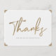 Send your love and thanks to your bridesmaid with our modern thanks postcard. The design features "Thanks" designed in a modern brush style script font in faux gold. Faux gold photo corners are added to the edges of the postcard. The reverse side features xoxo and love, with blank lines added to write your own personal message.