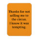 Thanks for not selling me to the circus. I know it was tempting card