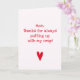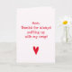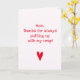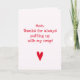 NewParkLane - Funny Greeting Card for Mother's day, with a funny quote that says: Mum, thanks for always putting up with my crap! in fun, red script typography. The inside says: Happy Mother's Day!