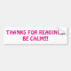 Thanks For Reading... Be Calm!!! Bumper Sticker