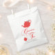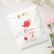 Delight your guests with this elegant Christmas tea party favour bag to express your thanks for their participation in your holiday tea celebration. Thank you text may be customised using the template provided. Red teapot with silver bow pouring out a pretty Christmas ball over graceful font. All covered with vintage red lace.