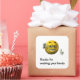A sticker for promoting hand washing. With cute smiley face character saying "Thanks for Washing your hands"