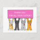 Four different cartoon cats wearing pink ribbons, holding up a pink sign that says 'Thank you for all your support'.