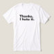 Grab this "Thanks, I hate it." funny saying tee shirt for awkward social events and cringeworthy moments. Show your sense of humour by wearing this basic cool text style. for Black and White Contemporary Art Lovers. I'm sure that it can spark many conversations and will help with breaking the ice. This funny awkward design is a great gift idea for employees, colleagues, coworkers, managers, supervisors, friends, or family, and also makes a great birthday, holiday gift, or Christmas present. Celebrate any occasion with a touch of personality and comfort! (YOU CAN CHANGE AND CUSTOMIZE THIS TEXT DESIGN OR ANY TEXT YOU WANT IN TEXTIFY STORE!).