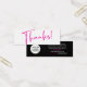Thank you for your purchase customer discount card package insert in a relaxed casual and flirty font and modern style. Fully customise the text and social media icons for your brand. Thank your clients and customers for shopping with you by including this with your packages and products to say Thanks and to give them a coupon code for a future purchase to encourage repeat business and to find you on social media. You can add or remove social media icons (Twitter, Instagram, TikTok, Pinterest, Snapchat, Youtube, Facebook, LinkedIn) by choosing "customise further" and turning them on/off in the layers panel and you can edit the colours too!