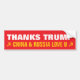 Thanks Trump China Russia Love You Hammer & Sickle Bumper Sticker