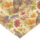 A wild turkey is surrounded with pumpkins, grapes, berries, nuts, and brightly coloured autumn leaves on a dark cream background. Perfect for Thanksgiving!