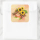 Square sticker with an image of things Thanksgiving, like ears of Indian corn, large yellow sunflowers, chestnuts, autumn leaves, and an orange votive candle on yellow and orange grunge. See matching custom-cut vinyl sticker, greeting card, label and confetti. See the entire Thanksgiving Sticker collection under the CARDS & STICKERS category in the HOLIDAYS section.