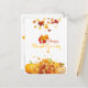 Beautiful Autumn falling leaves art with ripped pumpkins and customisable Happy Thanksgiving text.
