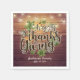 Thanksgiving Dinner Party Paper Napkin Templates - Elegant " Happy Thanksgiving " Script, Autumn Maple Leaves, Pumpkins and String Lights on Rustic Wood Background.