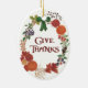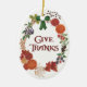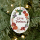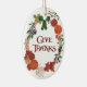 A beautiful, oval Thanksgiving Ornament with a wreath of fall fruits, leaves, seed pods and flowers from a watercolor design, hand-painted by Judy Adamson. The ornament is shown with a white background but you can easily change it to any colour you wish.