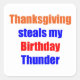 Thanksgiving steals my birthday thunder! Humourous design for those born on Thanksgiving. It's not always fun having your birthday on a holiday so if you know someone who has had Thanksgiving steal their birthday thunder, this design is for them.