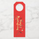 Thanksgiving Bottle Hanger saying " I am most thankful for the taste of fine wine"on a red background and falling dried leaves on the front side. While the back side says "happy Thanksgiving"