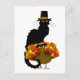 Thanksgiving Chat Noir with Turkey Holiday Postcard