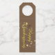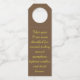 A very classic Thanksgiving bottle hanger says "This year I am thankful for roasted turkey carved pumpkins, lighted candles, and dried leaves" on the front side, and "Happy Thanksgiving" on the back side with falling leaves.
