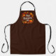 Happy Thanksgiving Day Apron with pumpkins, autumn leaves and acorns on dark brown background