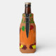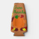 This bottle cooler has a Thanksgiving design of a pumpkin with a pile of leaves and falling leaves and reminds people to give thanks.
