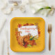 A Beautiful And Festive Thanksgiving Day Square Paper Plate In Orange With Fall Leaves and Cornucopia