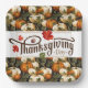 A Colourful Thanksgiving Day Square Paper Party Plate Designed With White And Orange Pumpkins And Fall Leaves