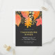 This modern Thanksgiving Dinner invitation postcard is decorated with watercolor fall leaves in autumnal colours on a dark background.