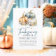 Elegant watercolor thanksgiving dinner invitation cards. Blue teal, gold orange, white colours with three pumpkins and flowers arrangement. Perfect for that rustic fall autumn holiday season. Invite your family, friends, co-workers, neighbours, guests...All text, colour and size are editable. See the 'FALL IN LOVE Blue Gold orange pumpkins' collection for other items.