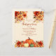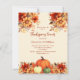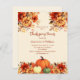 A soft beige background. Decorated with pumpkins and orange and yellow flowers. Personalise and add the party details.