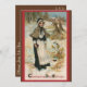 Vintage illustration Thanksgiving image featuring a pilgrim woman in a snowy field with the text "Thanksgiving Day Greetings."