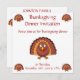 Thanksgiving dinner invitations with funny turkey and customisable text, printed on white background.