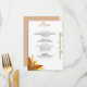 This is a Thanksgiving dinner menu template with a thanksgiving theme design. The menu can be customised with your own set of recipes and can be selected in a no of templates. The menu is written in a formal font and is well-organised. It would be a great addition to any Thanksgiving dinner table.
