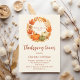 A warm, soft beige background. Decorated with fall themed wreath with orange foliage and pumpkins. . With the text: Thanksgiving Dinner written with a modern hand lettered style script. Personalise and add the details.