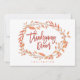A stylish Design with Thanksgiving Dinner in a mix of autumn colours and set in an elegant script typography sitting within a leafy border upon a geometric frame. On the reverse, easily personalise with your own details. The background colours can be changed if you wish via the Click to Customise Further option,