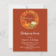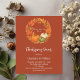 A warm burnt orange, terracotta coloured background. Decorated with fall themed wreath with orange foliage and pumpkins. . With the text: Thanksgiving Dinner written with a modern hand lettered style script. Personalise and add the details.