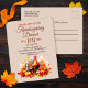 Join us for a heartwarming Thanksgiving feast! Our custom postcard invitation, adorned with a stunning watercolor Turkey, gracefully sitting amidst a backdrop of vibrant fall leaves and plump pumpkins, captures the essence of the season. The warm hues and artistic details set the tone for a delightful gathering filled with gratitude and joy. Extend your invitation to friends and family in style, and make your guests excited to celebrate this cherished holiday with you! Text can be edited from the product page. To change fonts styles or colours, use the design tool.