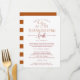 Perfectly charming in fall shades of garnet and pumpkin, our Thanksgiving dinner menu showcases your best holiday dishes with modern and festive typography and a cute acorn illustration. Customise with your names, the year, and your menu using the fields provided.